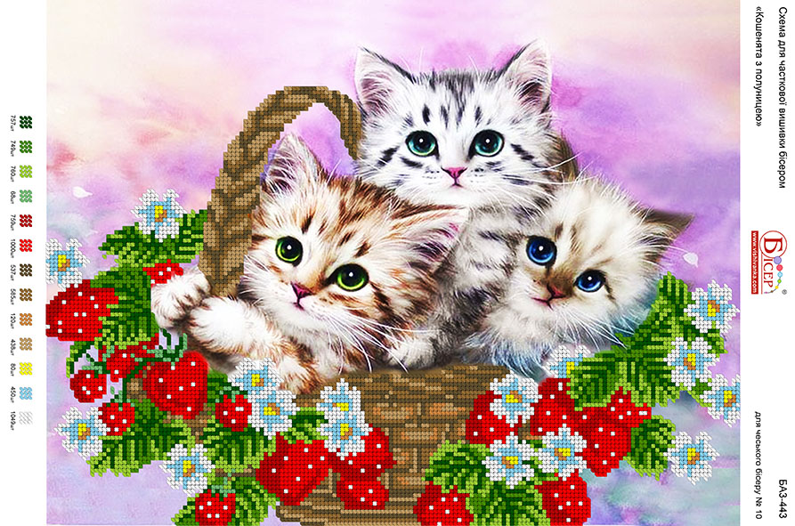 Картинка для вишивки бісером БА3-443 «Кошенята з полуницею»